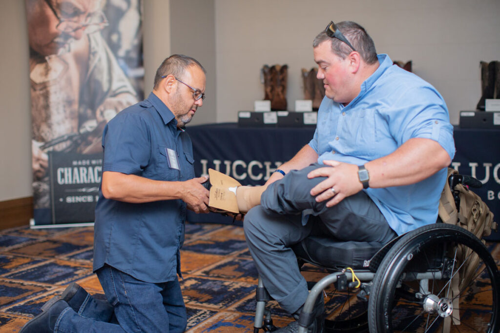 The events begin with the veterans arriving at San Rafael Ranch for an extended weekend of hunting, recreation, camaraderie, relaxation, and lots of good southern food. The memories and life-long relationships created in the hunting blinds and around the fire pits are priceless. Then, the veterans are flown (via NetJets) to El Paso to have an exclusive meeting, design consultation and fitting with the expertly skilled Lucchese team. In this experience, they are able to design a hand-crafted custom boot to fit their exact preferences and functional needs, ensuring they ultimately get a completely personalized boot to fit their unique prosthetic. They are then flown back to San Rafael to top the weekend off with more great food, great experiences, and even better memories.